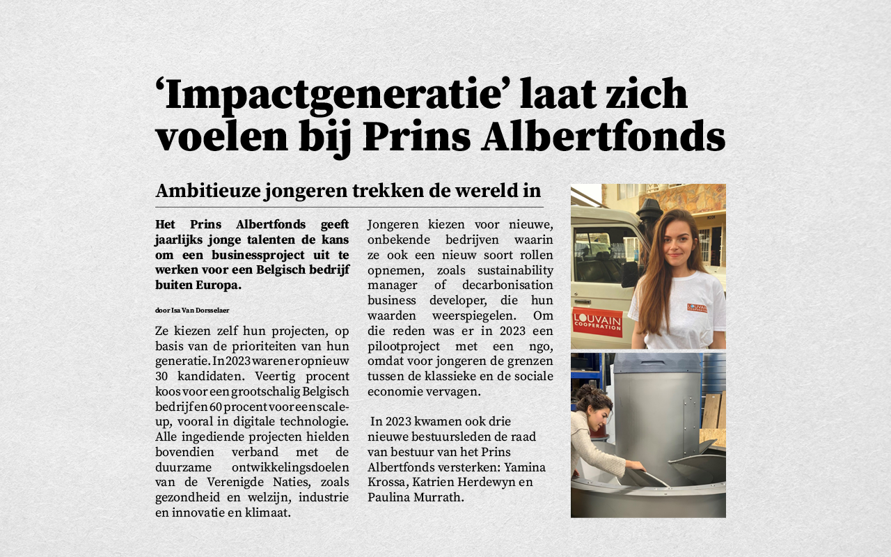 Het Prins Albertfonds geeft jaarlijks jonge talenten de kans om een businessproject uit te werken voor een Belgisch bedrijf buiten Europa.